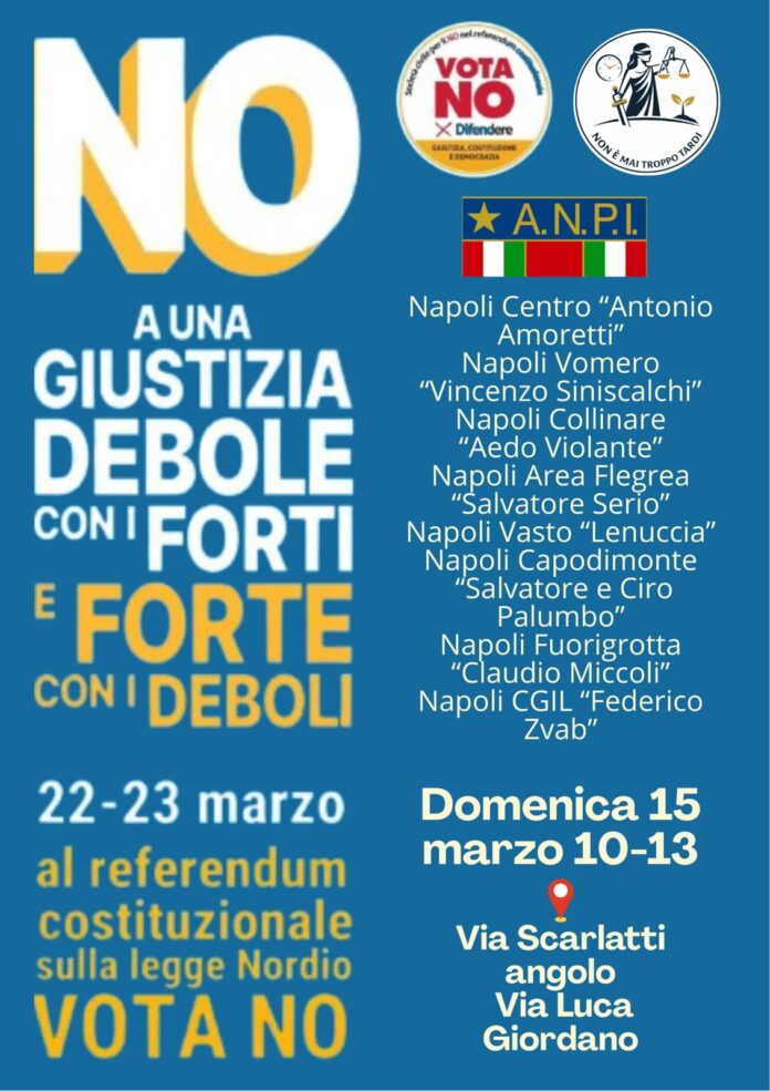 Mobilitazione delle sezioni cittadine dell’ANPI a Napoli in vista del referendum sulla riforma della giustizia. Domenica 15 marzo le sezioni dell’Associazione nazionale partigiani d’Italia si ritroveranno simbolicamente al Vomero per sostenere la campagna referendaria in difesa della Costituzione.