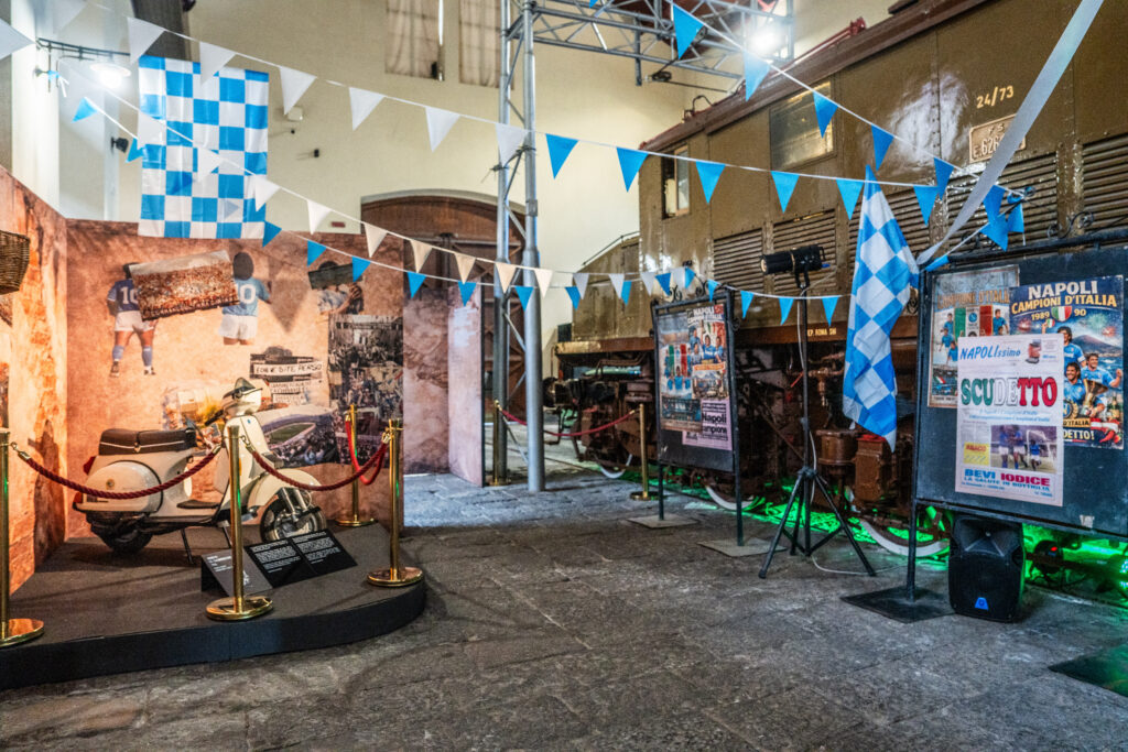 Questa infatti non è solo una mostra, ma un vero e proprio viaggio nel tempo. Tra i binari che un tempo videro nascere la prima ferrovia italiana, si stagliano icone del design automobilistico e motociclistico, creando un contrasto visivo mozzafiato tra il ferro scuro delle grandi motrici e le carrozzerie luccicanti dei club storici. Per l’occasione è stata esposta la ricca e prestigiosa Collezione Lopresto – tra le più autorevoli raccolte italiane di automobili d’epoca – che include l’Alfa Romeo 1900L del Presidente della Repubblica Giovanni Gronchi e la Fiat 1500 appartenuta ad Anna Magnani, simboli dell’eleganza e delle trasformazioni sociali del dopoguerra.