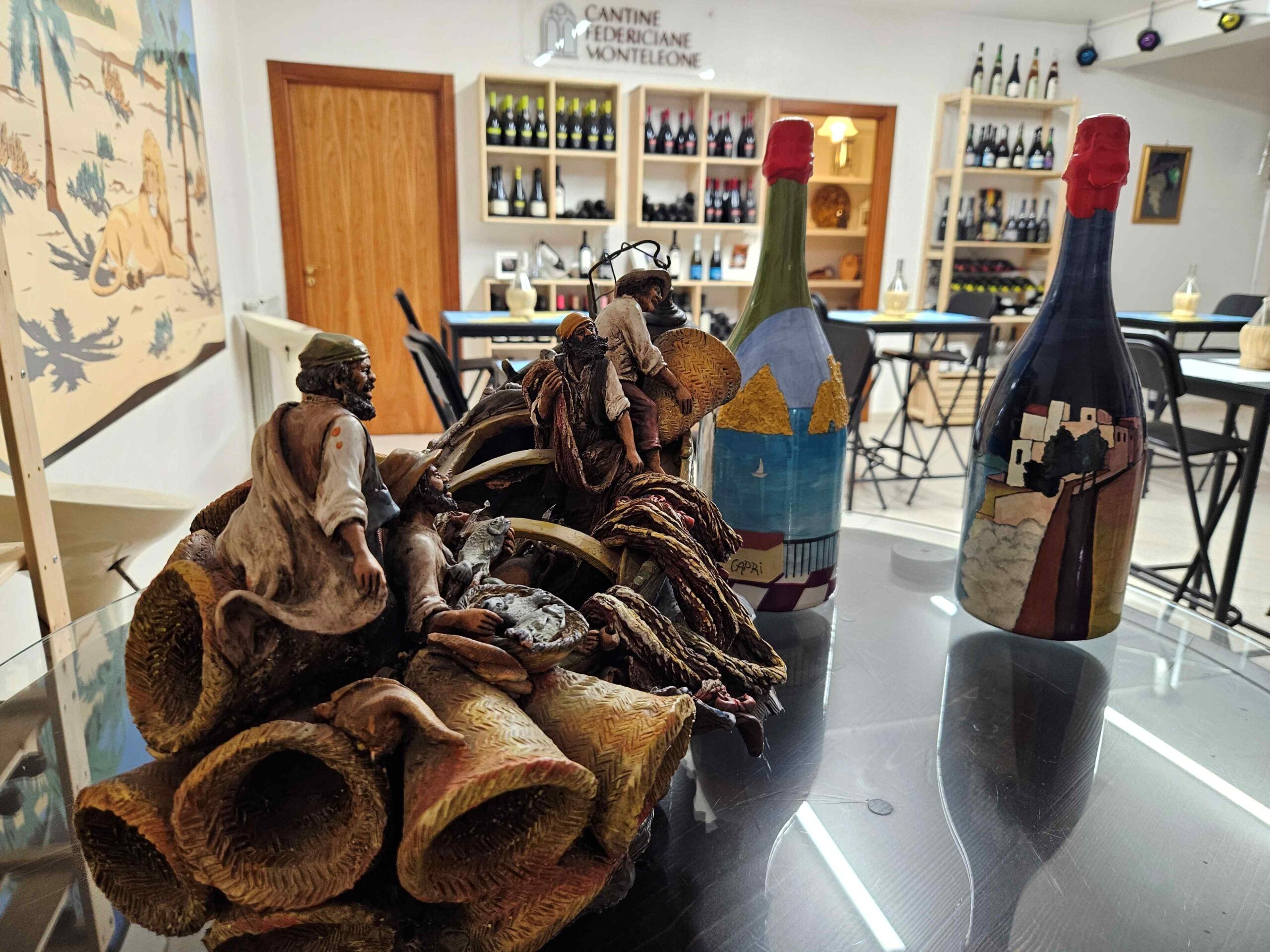 In occasione delle celebrazioni per i 2500 anni di Napoli, le Cantine Federiciane hanno inoltre realizzato una bottiglia Magnum del loro spumante flegreo, in collaborazione con l’artista Saggiomo. L’opera è stata consegnata al sindaco Gaetano Manfredi come simbolo di identità e orgoglio territoriale.