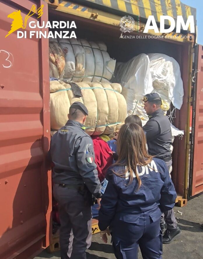 Maxi operazione di contrasto ai reati ambientali nel porto di Napoli, dove i funzionari dell’Agenzia delle Dogane e dei Monopoli, insieme ai militari del Comando Provinciale della Guardia di Finanza, hanno sequestrato oltre 130 tonnellate di rifiuti tessili destinati all’estero.