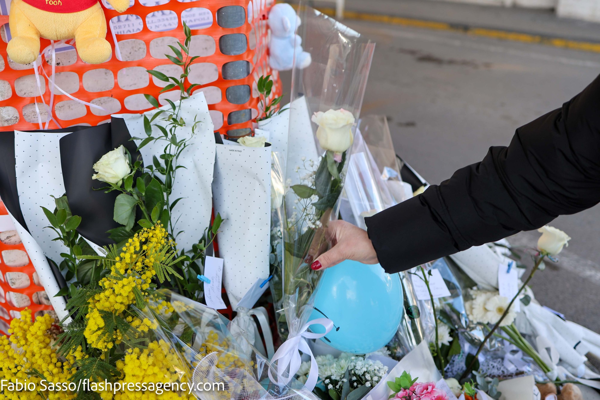 Tra i peluche adagiati sul marciapiede, spicca un orsacchiotto bianco con un cuore rosso cucito sul petto. Accanto, un biglietto: “Per Domenico, che ci ha insegnato quanto è preziosa la vita”. È forse questo il messaggio più potente lasciato oggi davanti a quelle mura: la vita di un bambino non può e non deve essere mai il prezzo di un errore.