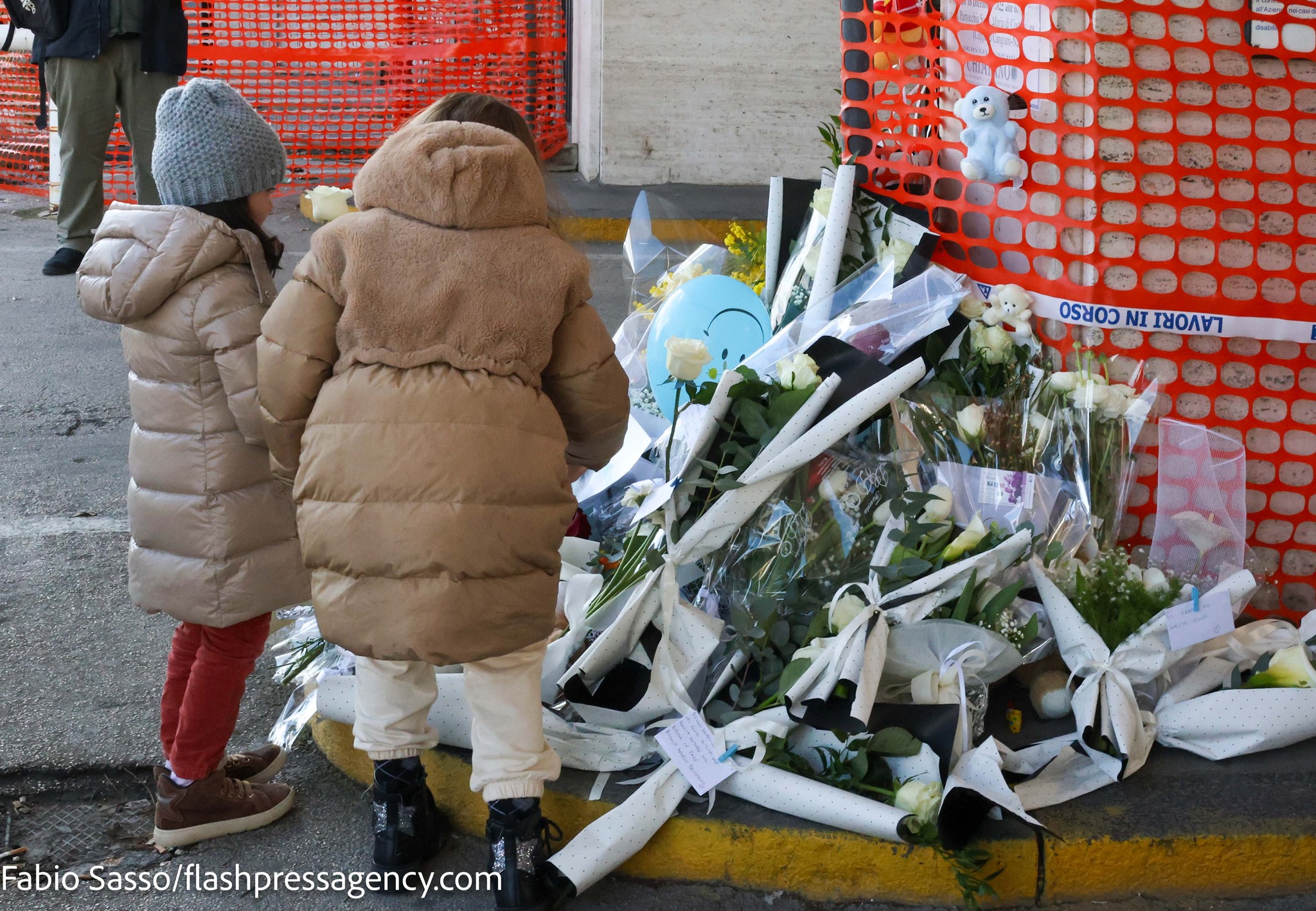 Tra i peluche adagiati sul marciapiede, spicca un orsacchiotto bianco con un cuore rosso cucito sul petto. Accanto, un biglietto: “Per Domenico, che ci ha insegnato quanto è preziosa la vita”. È forse questo il messaggio più potente lasciato oggi davanti a quelle mura: la vita di un bambino non può e non deve essere mai il prezzo di un errore.