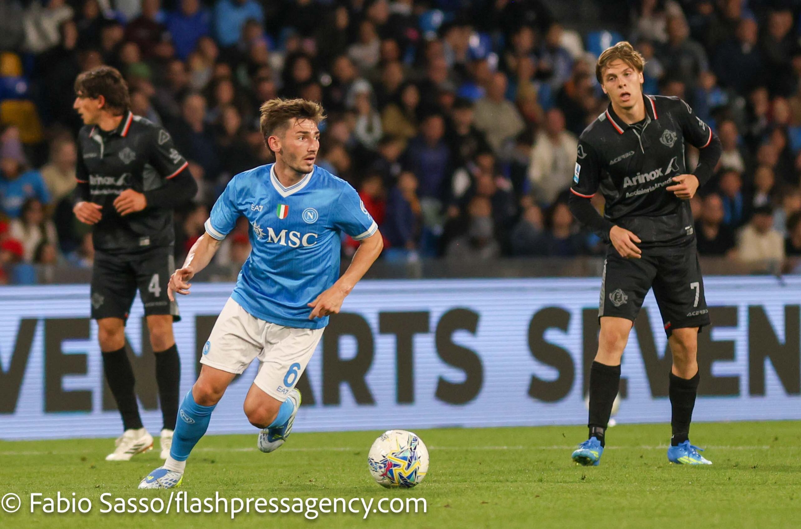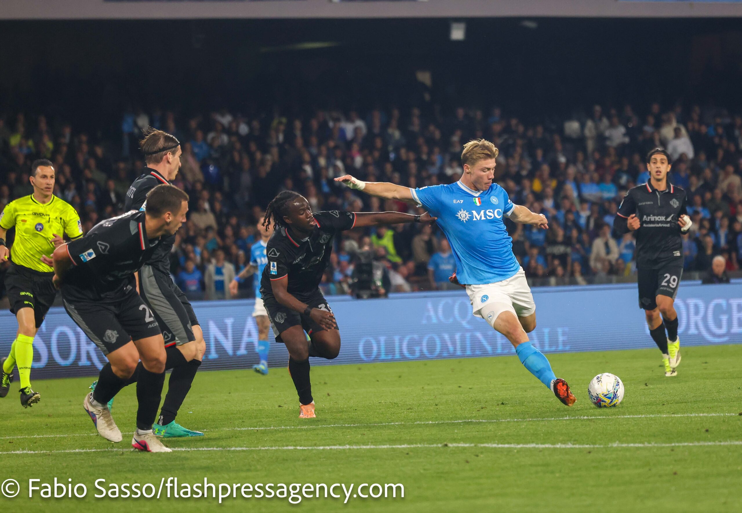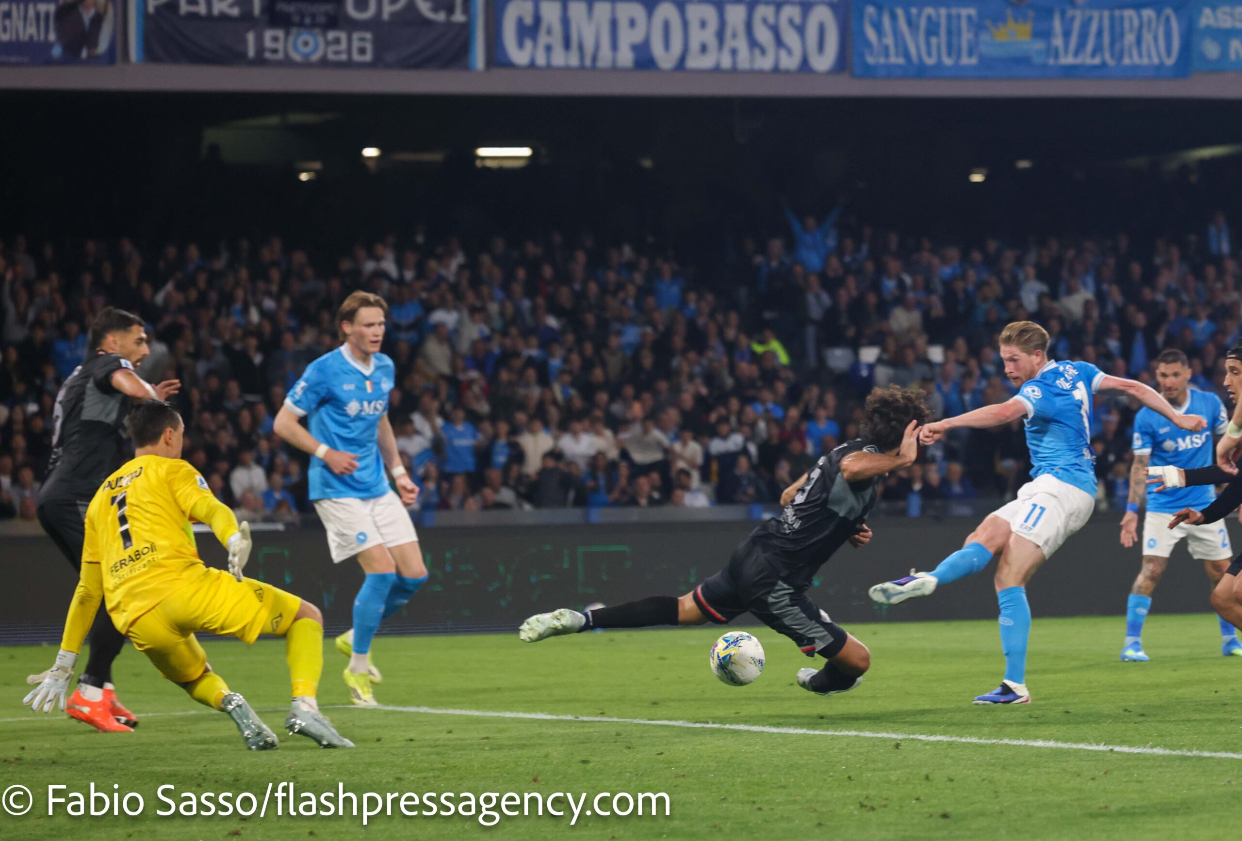 Hojlund spostato a destra vince al 44′ un duro scontro fisico con Baschirotto, si accentra e conclude con un tiro che batte sulla schiena di Terracciano e beffa Audero lanciato dalla parte opposta. Dopo tre minuti è De Bruyne a colpire la Cremonese. Il belga ruba il pallone dai piedi di Maleh e conclude da breve distanza con un diagonale che manda il pallone in rete.