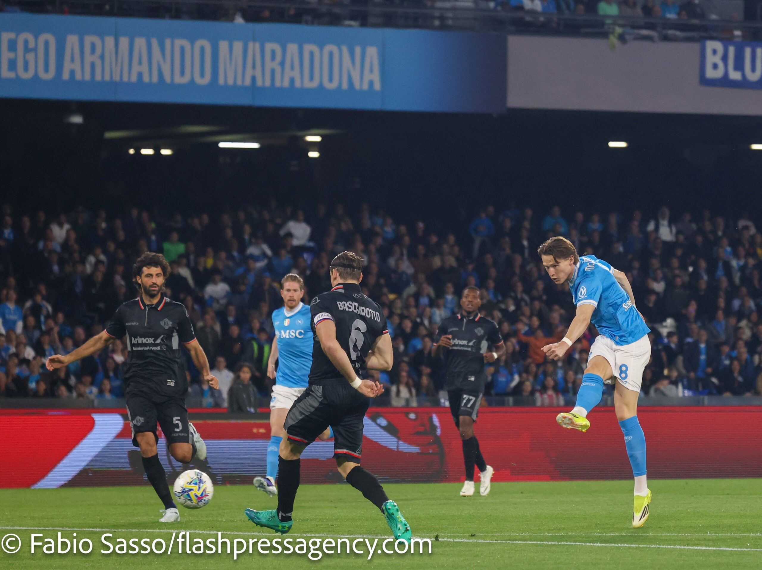 Dopo 6′ dall’inizio della ripresa il Napoli cala il poker. Su una rimessa in gioco con le mani di Milinkovic-Savic parte Alisson che percorre tutto il campo, entra in area di rigore e conclude l’azione con un tiro vincente di destro. Gli allenatori effettuano tutti i cambi a disposizione ma il tema della partita con il predominio nettissimo del Napoli non muta. Gli azzurri sfiorano più volte il quinto gol, soprattutto, ma non solo, con una traversa colpita da Rrahmani con una conclusione di testa e con un calcio di rigore calciato da McTominay al 36′ e parato da Audero dopo un tocco di mano in area di Grassi su conclusione di Giovane.