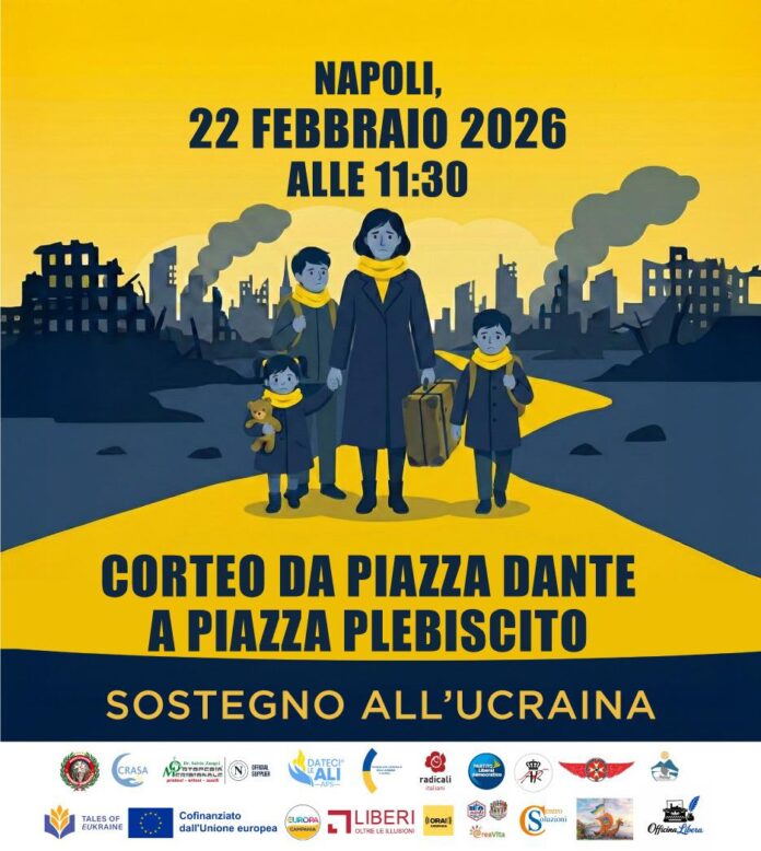 NAPOLI – Un corteo cittadino per ribadire che la solidarietà non può trasformarsi in abitudine né in silenzio. Domenica 22 febbraio 2026, alle ore 11.30, partirà da la manifestazione “Sostegno all’Ucraina”, con arrivo in , nel cuore della città.