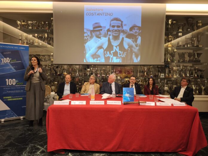 Una sala gremita, oltre duecento presenze e un parterre di campioni e dirigenti hanno celebrato la presentazione di “100+anni di storia e statistiche dell’atletica in Campania”, il volume scritto da Rino Manzo, dirigente sportivo e Stella d’Oro del Coni, e da Fausto Narducci, già redattore capo della Gazzetta dello Sport e direttore della rivista federale Atletica. Il libro, con prefazione di Stefano Mei, presidente nazionale della Federazione Italiana di Atletica Leggera, è edito da LeVarie.