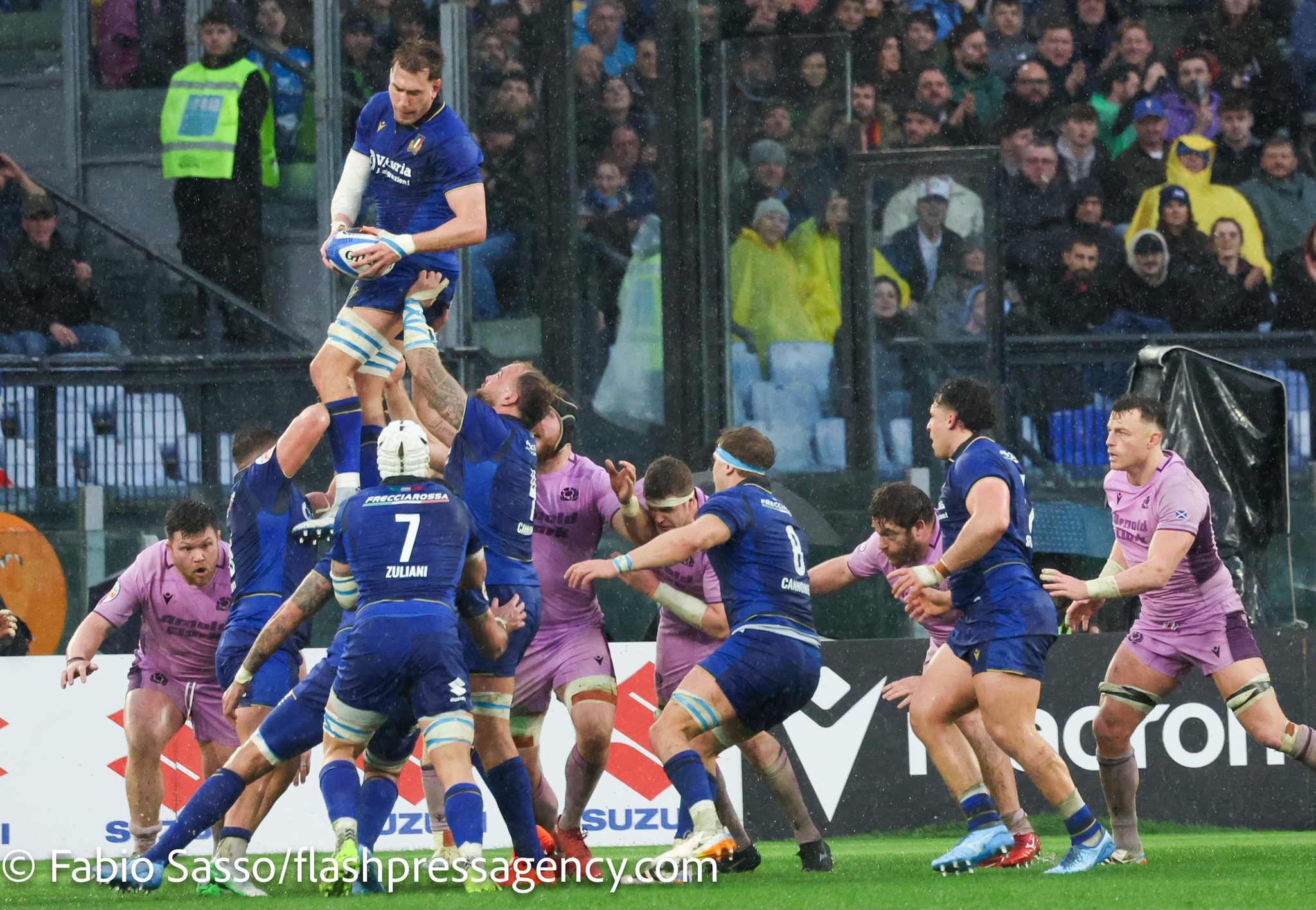 Roma – Una notte di rugby vero, fatto di sacrificio, fango e cuore. L’Italia supera la Scozia 18 a 15 allo Stadio Olimpico in un match valido per il Torneo delle Sei Nazioni e firma una vittoria pesantissima, sia per la classifica sia per il morale. Davanti a 68.000 tifosi, accorsi nonostante il maltempo e una pioggia caduta senza tregua, gli azzurri dimostrano maturità, solidità e una consapevolezza nuova.