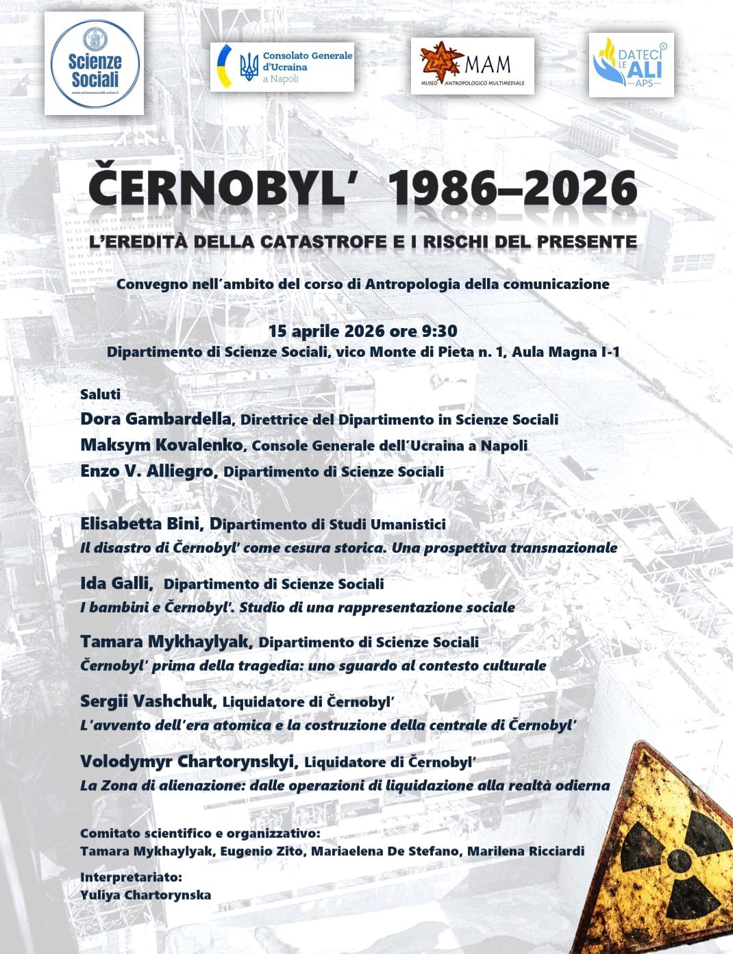 Presso l’Aula Magna del Dipartimento di Scienze Sociali, in Vico Monte della Pietà 1, si terrà il convegno dal titolo “Chernobyl 1986–2026 – L’eredità della catastrofe e i rischi del presente”, organizzato in occasione dell’anniversario della tragedia che segnò profondamente l’Europa e il mondo intero.